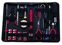 This is the kit the company I work for bought for the computer support technicians. It is more of a general electronics tool kit than the specialized computer tool kits Belkin offers, but I have found plenty of uses for the kit outside of the office (but don't tell my boss that). I've been using the kit for 3 years now, and the only thing that is not original is the flashlight - that is the only really cheap thing in the kit - get a Mini-Mag to replace it and you'll be fine. This kit includes an allen wrench set, mini pocket screwdriver, small diagonal cutters, long nose pliers, wire stripper, mini-screwdriver set, 6" extended phillips bit, pen knife, IC chip remover, tweezers, soldering iron with solder and wick, parts retriever and a ratcheting screwdriver with standard, phillips, torx, and square bits and both metric and standard sockets with a socket bit. I've used this kit on PC computers, laptops, wiring of all sorts, electronics repairs, home repairs, etc. All the tools (with the exception of the flashlight) have survived 3 years of use and are still going strong. The only other casualty has been the elastic in the case in some spots. Overall a very good general electronics took kit and far better than all the other "computer tool kits" that I've ever owned - some costing just as much with tools that didn't last a year of lighter use. Spend the few extra dollars and get a Belkin tool kit - the 36-piece computer tool kit, the "kitchen sink" 65-piece too kit, or this excellent, more general purpose 55-piece tool kit. I am confident that you'll be as pleased with it as I have been over the years.